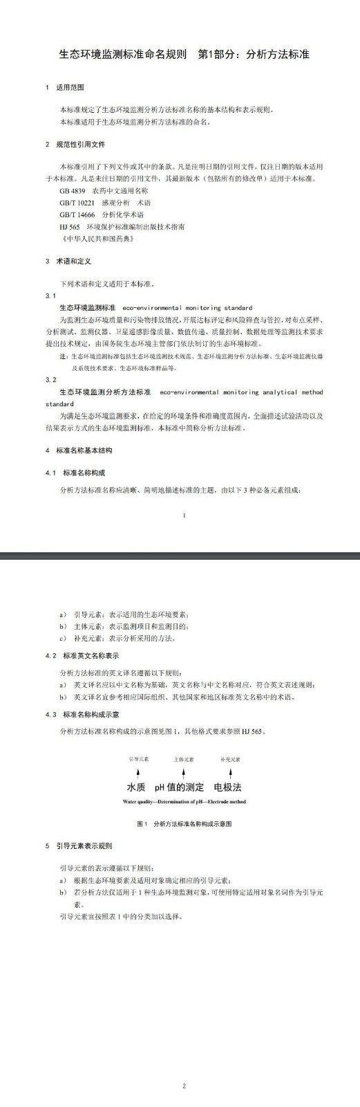據(jù)介紹,該標準為首次發(fā)布,由中國環(huán)境科學研究院負責起草,規(guī)定了生態(tài)環(huán)境監(jiān)測分析方法標準名稱的基本結(jié)構(gòu)和表示規(guī)則,將用于生態(tài)環(huán)境監(jiān)測分析方法標準的命名。標注寧缺,分析方法標準名稱應清晰、簡明地描述標準的主題,由3種必備元素組成:a) 引導元素:表示適用的生態(tài)環(huán)境要素;b) 主體元素:表示監(jiān)測項目和監(jiān)測目的;c) 補充元素:表示分析采用的方法。