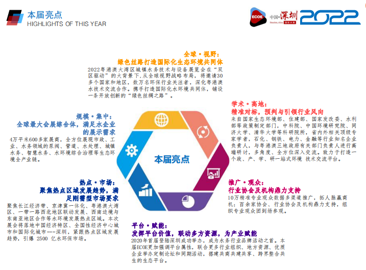 在“雙區(qū)驅(qū)動(dòng)”的大背景下,“粵港澳大灣區(qū)城鎮(zhèn)水務(wù)技術(shù)與設(shè)備展覽會(huì)”將以“研討+展覽展示”的方式,深度打造吸引創(chuàng)新力量、聚合科研團(tuán)隊(duì)、培育創(chuàng)新活力的平臺(tái),為以深圳為中心的粵港澳大灣區(qū)在生態(tài)環(huán)境領(lǐng)域的創(chuàng)新治理提供支撐和服務(wù)。