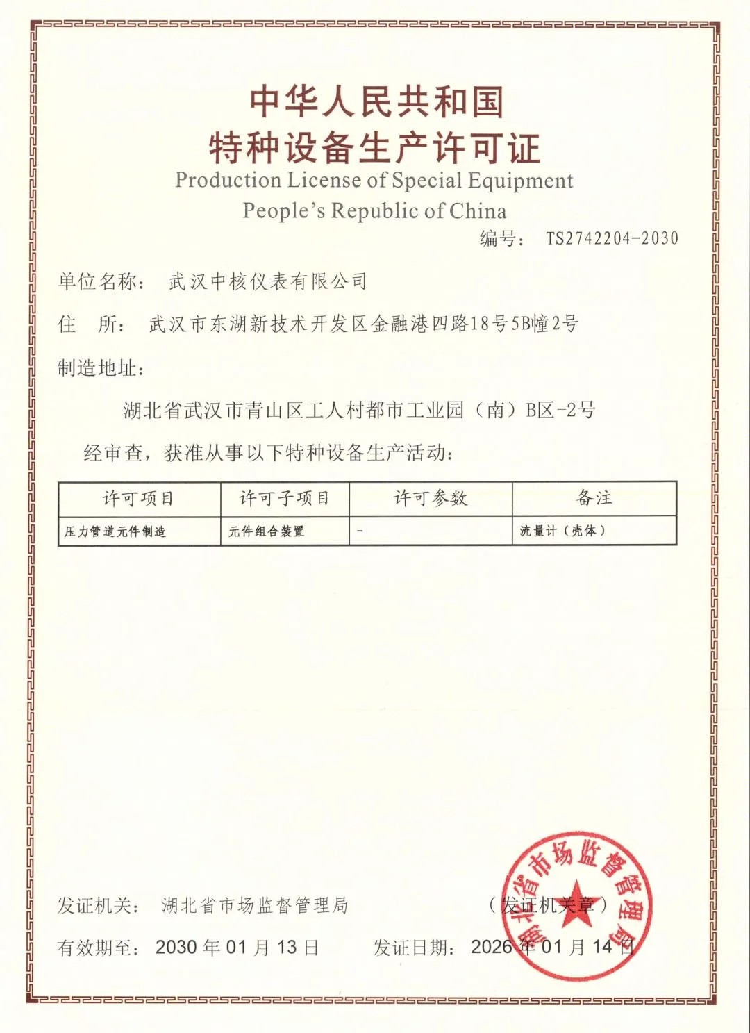 近日,武漢中核儀表歷經(jīng)嚴(yán)苛審核,獲批壓力管道元件制造類《特種設(shè)備生產(chǎn)許可證》。公司一貫保持在生產(chǎn)合規(guī)性、技術(shù)實(shí)力與質(zhì)量管理體系等核心維度,嚴(yán)格按照國家特種設(shè)備制造標(biāo)準(zhǔn)要求,為產(chǎn)品質(zhì)量檢驗(yàn)與客戶安全生產(chǎn)提供保障。